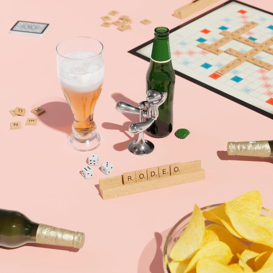 Balanced and High-Quality: Balanced on its built-in display stand. Crafted from cast metal with a polished chrome finish, the Rodeo Buddy is a high-quality bottle opener designed for durability and a long-lasting shine. A great conversation starter: The Rodeo Buddy is an interactive conversation piece that adds a whimsical, modern touch to your space; it makes the perfect gift.